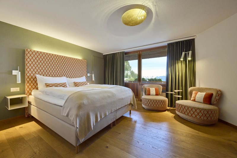 55 moderne Zimmer und Suiten, viele mit Panoramablick, schaffen eine behagliche Atmosphäre. Für Seminare stehen vier helle, technisch gut ausgestattete Räume für bis zu 100 Personen bereit – vom großen Plenum bis zum kleinen Breakout. Highlight ist der 1’100 m² grosse Wellnessbereich mit Innen- und Aussenpool, Saunen und Spa – ergänzt durch regionale Küche mit alpiner Aussicht und persönlichem Service.